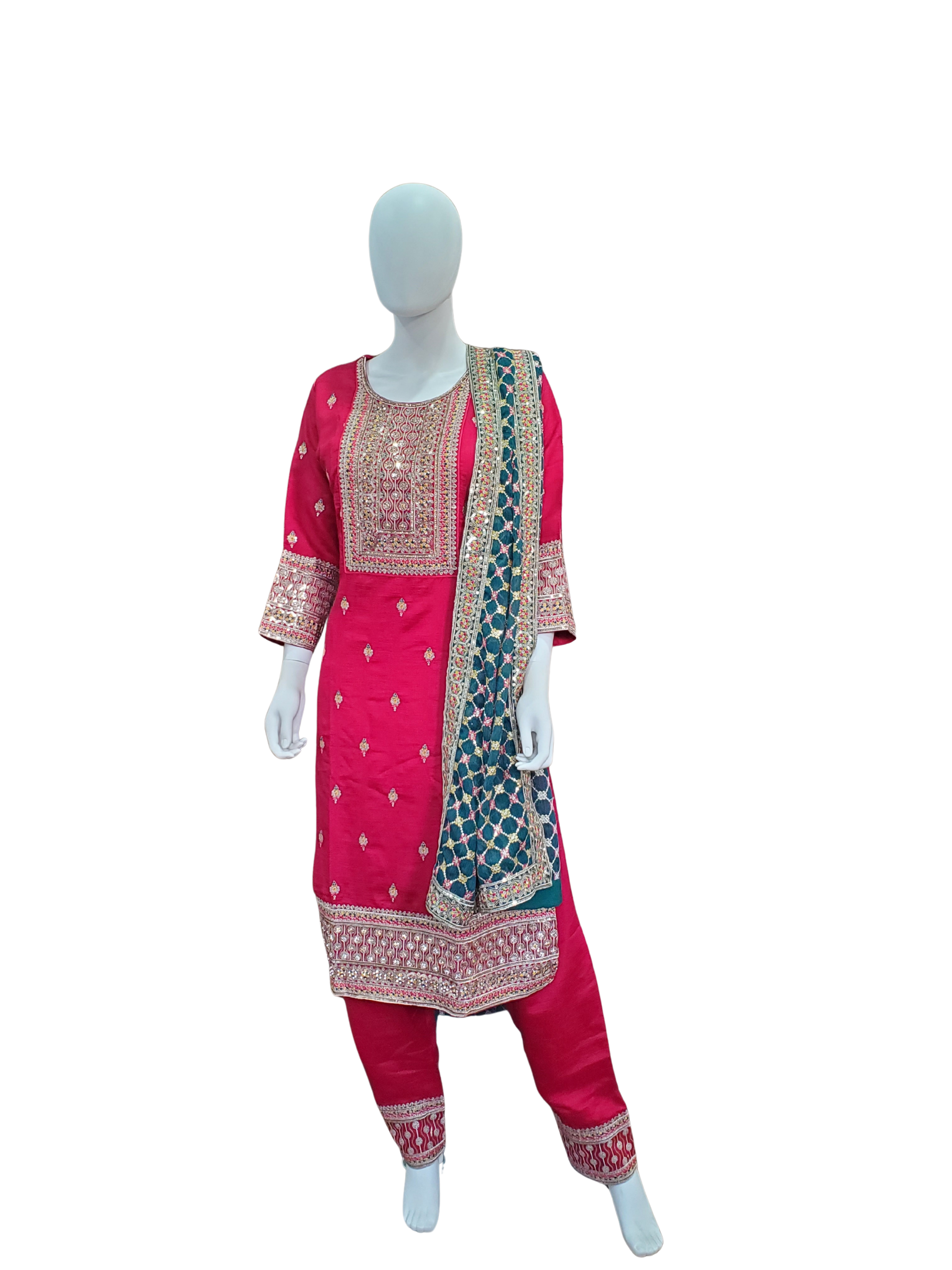 This elegant salwar kameez set is a perfect choice for those who appreciate classic design, fine craftsmanship, and effortless grace.